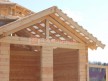 На террасе при условии что она есть делаем перила из строганной доски со всех сторон, столбы террасные также строганные, а не обрезки профилированного бруса с шипом и пазом. Домкратики на столбах для дальнейшей регулировки. Балясины будут сделаны аккуратно. Обратите внимание что в дешёвых случаях это может быть и будет просто вагонка прибирая к неотесанной доске снаружи и столбы будут не квадратные а просто профилированный брус как на видео.
