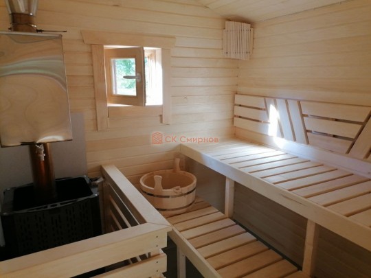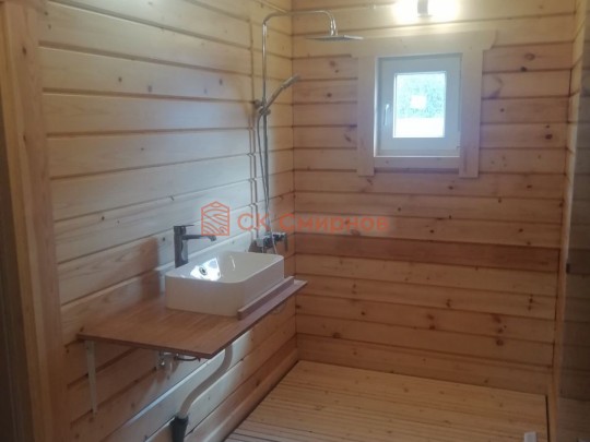 Для строительства надёжной бани 5.3х8 метров СК Смирнов разработал проект №280 с обустроенной парной и комнатой отдыха. По планировке общая площадь составляет 42.4 квадратных метров. Мы строим бани под ключ с полной отделкой снаружи и внутри.
