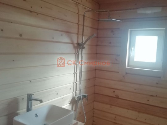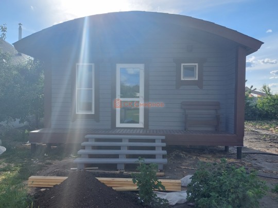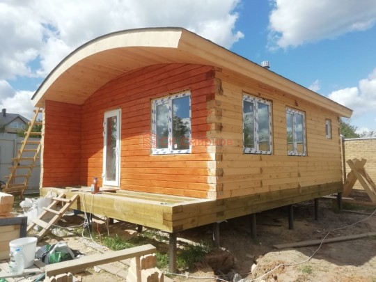 Такая одноэтажная баня 5.3х8 может быть построена из бруса. Ориентировочный срок строительства 31 дней.