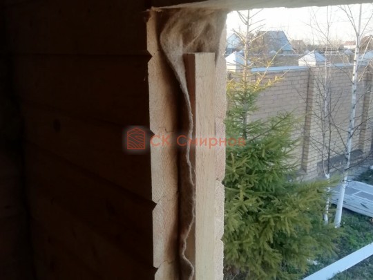 Обязательный элемент брусового дома или бани, это брусок в пиленный в брус в проем двери или окна не менее 50х50мм. Обязательно должен оставаться зазор сверху на усадку и этот брусок не должен быть жёстко закреплен в проеме. В некоторых случаях внутри помещения ставим металлические ройки, уточняйте. Посмотрите отрывок видео как могут повести себя стены