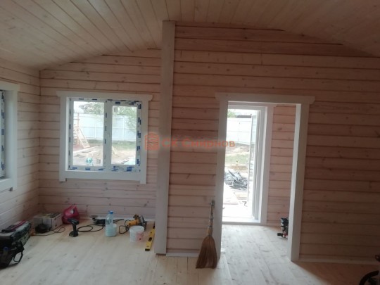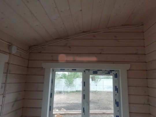 Потолки, стены вансардного каркасного этажа ( если он есть ) обшиваются сухой вагонкой.
