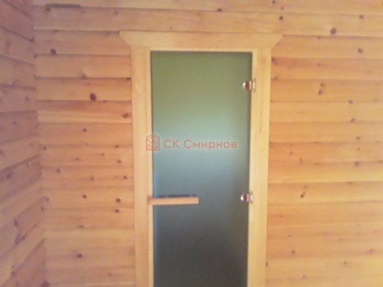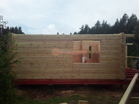 Конкретно эта баня на фотографиях и видео построена из отличного кедрового бруса камерной сушки с компенсационными пропилами 140х140. Также для сборки сруба в чашу подходит клееный брус. К сожалению, из бруса естественной влажности такую баню не построишь, поэтому и цена соответствующая.
