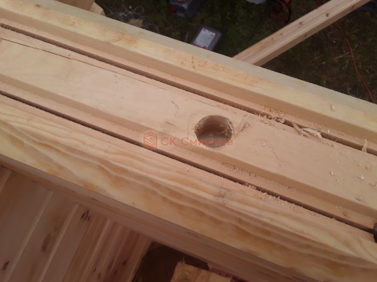 Мы сверлим отверстия в верхнем брусе, смотрите видео и пометьте для себя этот не маловажный фактор.