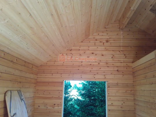 Потолки, стены вансардного каркасного этажа ( если он есть ) обшиваются сухой вагонкой.