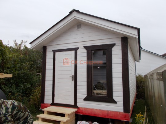Строительство такой одноэтажной бани 3х6 доступно на любом участке в в области. Консультации менеджера в в городе по бесплатному телефону 8 (906) 200-57-99.