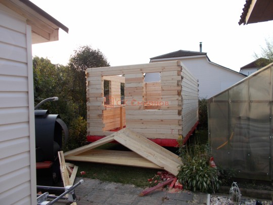 Баня на фотографии построена из сухого профилированного бруса камерной сушки