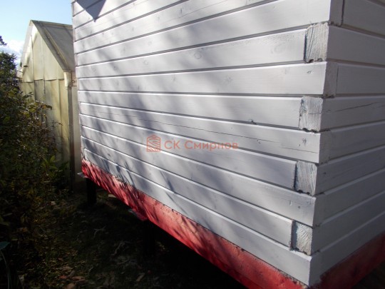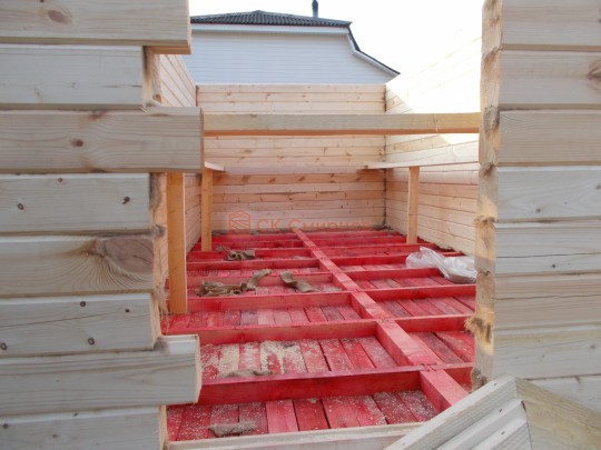 Лаги, обвязку и черновой пол обрабатываем раствором био огне защитой ( зимой оговариваются отдельные условия ), в основном красный цвет, но может быть и бесцветная обработка.