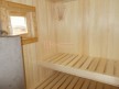 Сруб построен из сухого бруса камерной сушки 140х140. У нашего бруса особенный финский профиль с наплывом по бокам — это защитит баню от появления щелей во время усадки. Кроме того, брусины собираются со сверлением. Это, опять же, нужно для того, чтобы усадка сруба прошла максимально безболезненно.