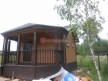 Терраса необычайно привлекательной формы дает своему обладателю широкий спектр возможностей: здесь можно установить небольшой мангал и садовую мебель, для полноценного отдыха между принятиями банных процедур. Для вечерних посиделок террасу можно украсить цветами и небольшой прозрачной гардиной, таким образом, вы создадите великолепный уголок, в котором можно будет послушать пение птиц или стрекотание кузнечика.