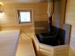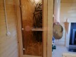 Строение одноэтажное, но с чердаком (он не жилой, но может использоваться для хранения) — подняться можно с террасы по приставной лестнице. Баня размером 3 на 8 метров. Внутри 3 помещения: комната отдыха, парная и душ. Установлена независимая душевая система с бойлером и насосом. Проектом предусмотрена печь с выносной топкой через стену. Каменка остаётся в парной, а топить нужно из комнаты отдыха. Это удобно.