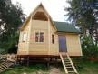 Из профилированного сухого бруса 9х14см, 14х14 см или 14х19 см. Сборка сруба в теплый угол на нагеля или гвозди 200 мм со сверлением отверстия в верхнем брусе (в зависимости от вида бруса).