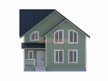 На фото представлен проект дачного дома №255 габаритами 7.5х8.5 метров и отличной планировкой общей площадью 124 квадратных метров. Можно выделить несколько особенностей проекта: эркер, туалет, ванная, санузел, панорамные окна. Коттедж полутораэтажный, может использоваться как зимний, для постоянного проживания, коттедж.