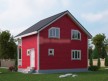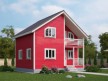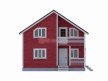 На фото представлен проект красивого дачного дома каркасной сборки №267 габаритами 6х8 метров и отличной планировкой общей площадью 96 квадратных метров. Коттедж полутораэтажный — полностью собран по каркасной технологии с утеплением. Может использоваться и как дача, и как зимний дом для ПМЖ (при дополнительном утеплении).