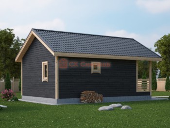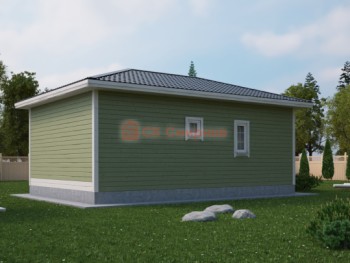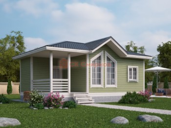 Проект адаптирован под строительство по каркасной технологии. Материал наружной отделки на выбор заказчика. Это может быть сухая доска, блокхаус, имитация бруса, сайдинг и пр. В осное лежит мощный брусовый каркас с утеплением в летнем или зимнем варианте.