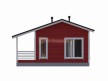 В основе лежит мощный брусовой каркас с утеплением. Снаружи варианты отделки могут быть разными: блокхауз, имитация бруса, отделочная доска внахелёс «американкой» и пр. Цвет стен любой на ваш выбор (рекомендуем палитру Тиккурила Винха для деревянных фасадов). Также обсуждаемы размеры окон и террасы, расположение и размер комнат.